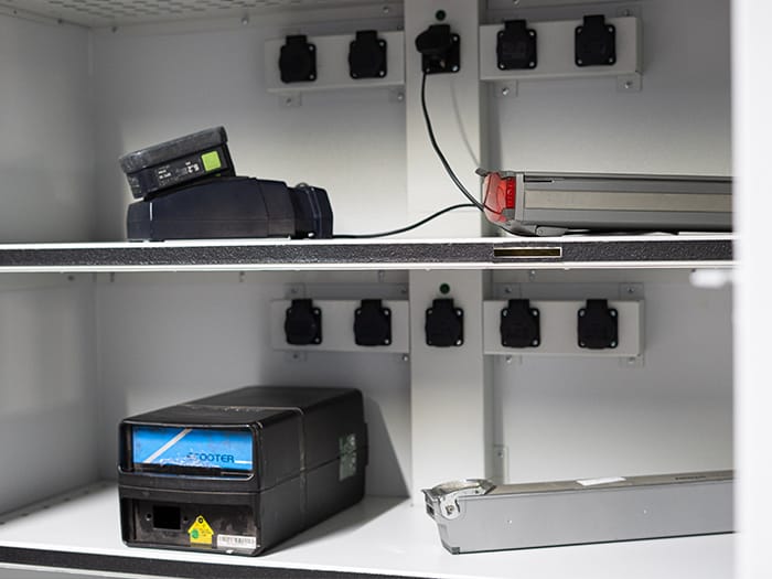 The Batteryguard XL can be easily expanded with smart options that make daily use even more convenient, such as docking stations, pull-out shelves and an electronic code lock on the door. Want to know which extras are most useful for your situation? Take a look at the available options.