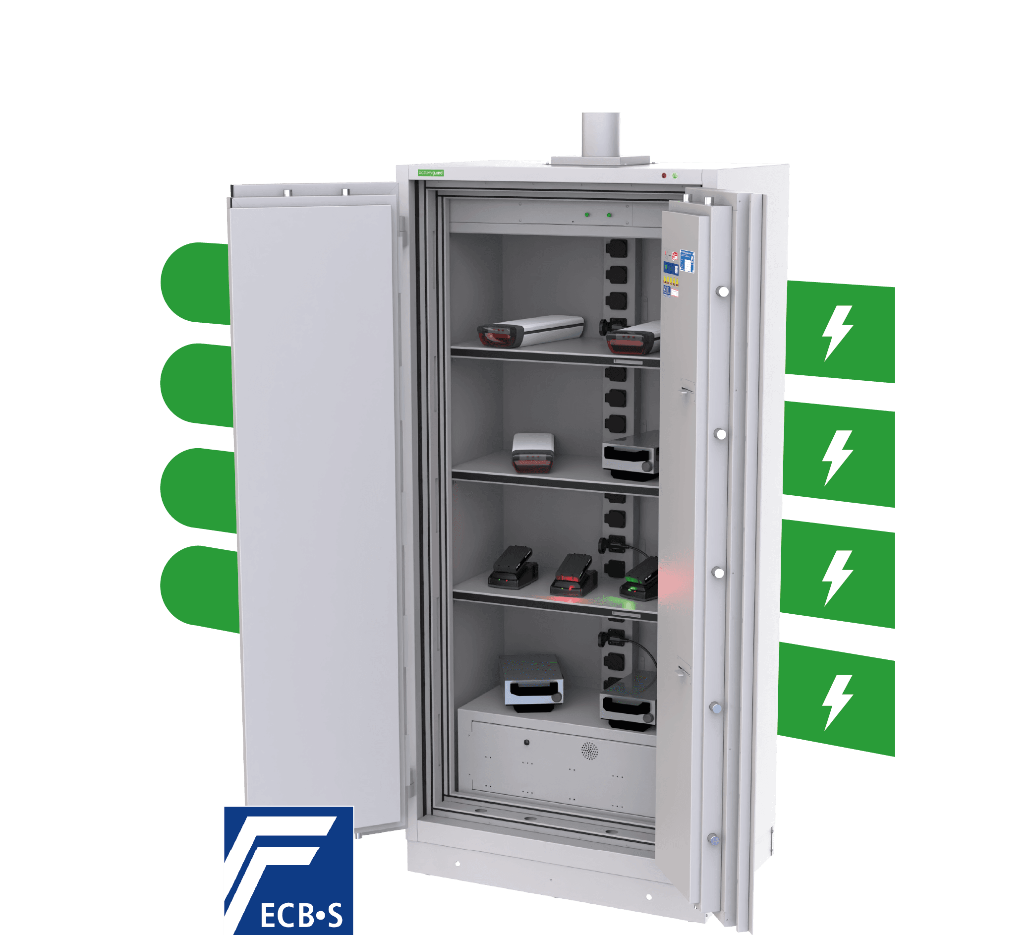 The XL-16 has been tested according to the VDMA 24994 test requirements. Based on these tests, the battery safe has been awarded the ECB-S certificate.
