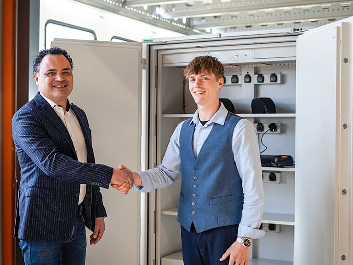 “Eventually, I ended up with the insurer Nationale-Nederlanden,” says owner Tom van Schijndel. “It was really enlightening to find an insurer that had delved into it. They explained that at least used batteries had to be stored in a fireproof cabinet.”